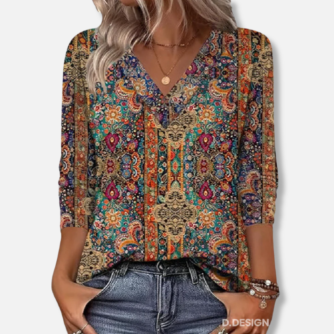 Elysea™ Retro Printed Blouse V-Neck